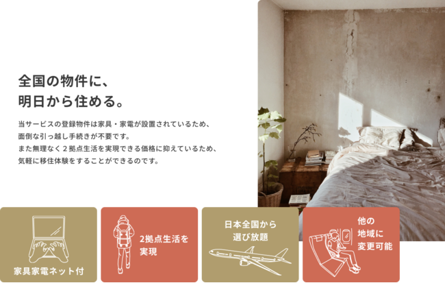 家具・家電・ネット付きの家が全国から選び放題!リュック1つで今日から移住