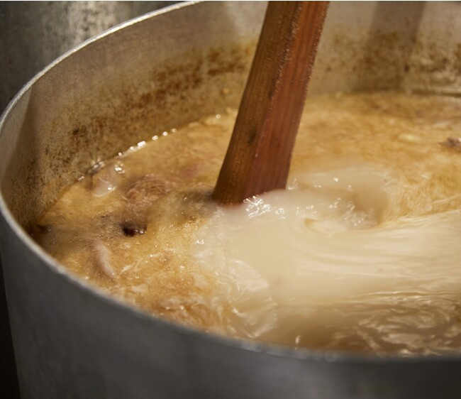 珍遊の冷凍中華そばは、珍遊河原町六角店の裏に製造室を作り、普段お店で中華そばを提供している者がお店と同じようにスープを一杯ずつ作り、お届けしています。長年お店で培った経験ある者(弊社の代表)が作るからこそお店の味。一杯入魂の中華そばを提供したい気持ちはお店もオンラインショップも同じです。