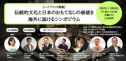 そしてこの挑戦の意義と可能性を広く伝えるべく、7月29日(火)に大阪南港でシンポジウムを開催する。シンポジウムでは、日本文化、ブランディング、観光、華道、経営の専門家によるパネルディスカッションを行い、日本文化の海外発信、その可能性と未来を探る。