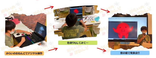 本イベントは、英語に加え、創造力や理論的思考力といった基礎能力を育むことを目的としたSTEAM教育の一貫として開催します。みらいのおねんど教室で採用している世界中のプロが使用する3DCG制作ソフト「ZBrush」で海の生物を制作し英語でプレゼンテーションを行います。本イベントで3Dモデリングした作品は3Dプリンターで出力し、後日ご自宅にお届けいたします。