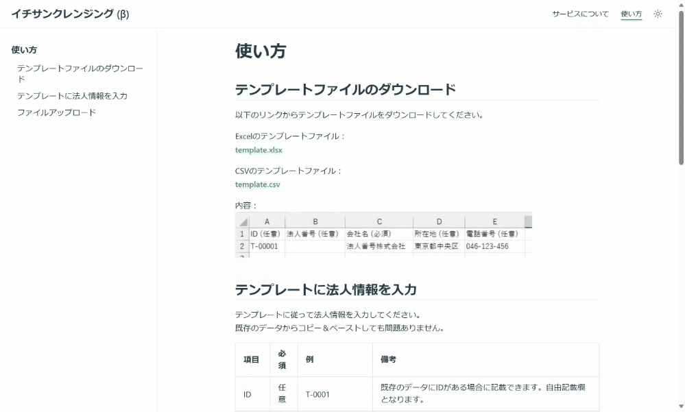 「イチサンクレンジング」は、csv/Excelファイルをアップロードするだけで企業名の名寄せや、法人番号・インボイス番号の有無を確認できる無償ツールです。