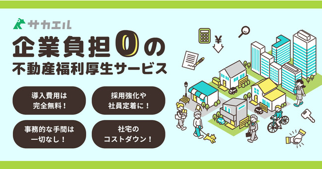 株式会社Atip(以下エティップ、本社:東京都港区、代表取締役社長:月澤尚也)は完全無料の不動産福利厚生サービス「サカエル」を1月24日(火)より提供開始いたします。「サカエル」を導入いただいた企業の従業員は、賃貸住居への引っ越し時にかかる仲介手数料などが無料になります。