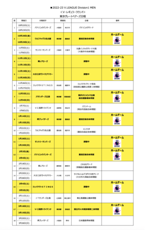 東京グレートベアーズの2022-23シーズン V.LEAGUE DIVISION1 MENの試合日程をお知らせ致します(2022年6月16日時点)。