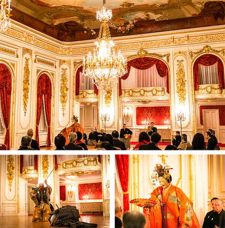 国宝・迎賓館赤坂離宮にて昨年収録した映像のダイジェスト版を特別に公開いたします。謡曲「羽衣」の景趣を描いた大絵画が、天井に描かれていることに由来する「羽衣の間」での華やかな上演の様子を是非ご覧ください。