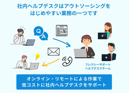 フレックシステムズ株式会社(本社:東京都港区新橋、代表取締役:笹川廣太郎)は、情シスアウトソーシング(情報システム代行)サービスを拡充し、このたび社内ITヘルプデスク特設サービスサイトを、2024年3月11日にオープンしました。社内IT 業務の中でも最も煩雑な業務の一つである社内ITヘルプデスク(社内ユーザからのITに関する問い合わせ対応)を丸投げ、あるいは一部業務を手軽にアウトソーシングできるサービスです。情報システム部門がある企業様も、IT担当をスタッフの方が兼任されている企業様にも有効にお使いいただけます。人手不足やIT人材不足に対応でき、IT属人化も払拭できます。