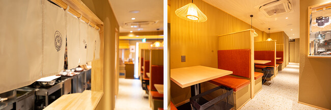 ・温かみのある木の設えの店内はボックス席がメイン。