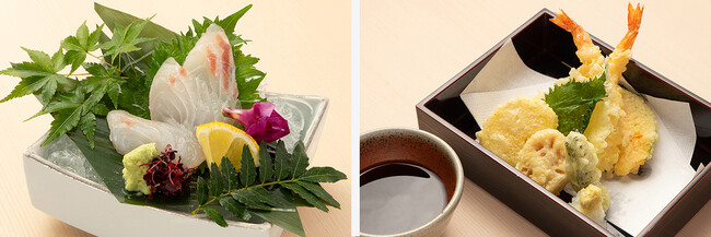 ◆ +380円(税込418円)で天ぷらもしくは造り3種をお付けできます