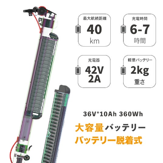 バッテリー:リチウムイオンバッテリー(10Ah/36V)