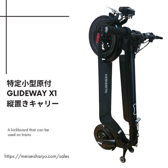 令和7年7月24日、明成車輌株式会社(本社:京都市南区吉祥院長田町556、代表取締役:三宅将喜)は、特定小型原付電動キックボード「GLIDEWAY X1」が縦置き及び片手で誰でも運搬できるキャリーオプションの発売を発表。