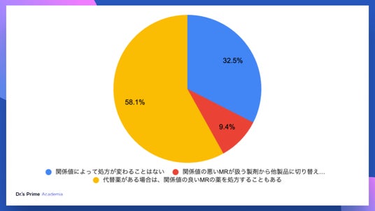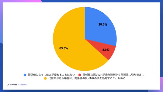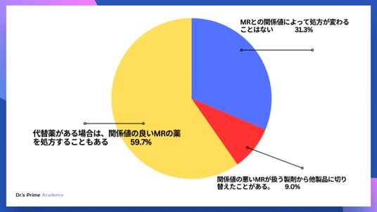 その一方で、”関係値の良いMRの製剤を処方する”と答えた医師は六割弱もいました。
