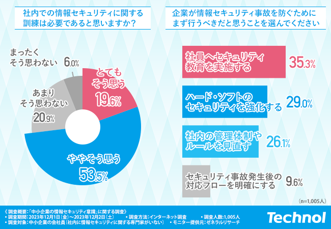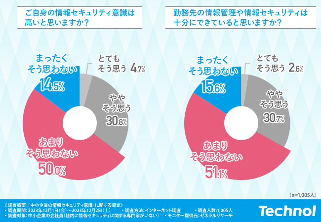 そこで今回、情報を最新の脅威から守る予防訓練サービス『MR-SAT』(https://mrb-security.jp/lineup/mr-sat)を運営する株式会社テクノルは、中小企業の会社員を対象に「中小企業の情報セキュリティ意識」に関する調査を実施しました。