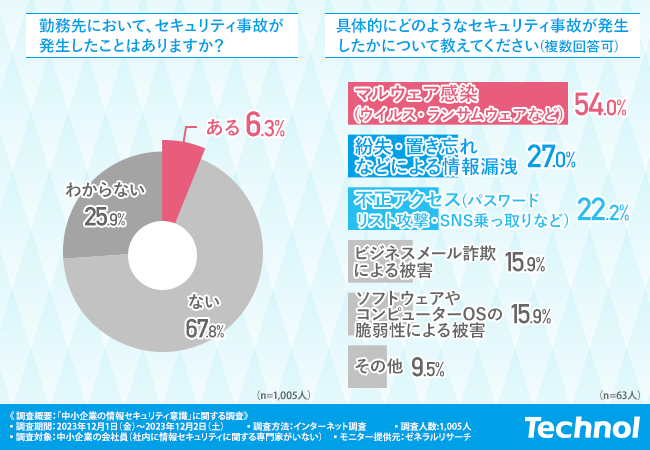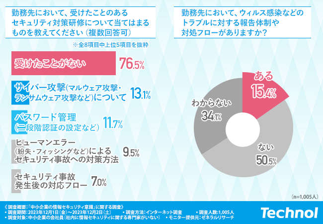 株式会社テクノル(所在地:青森県八戸市、代表取締役社長:千葉 哲也)は、中小企業の会社員を対象に「中小企業の情報セキュリティ意識」に関する調査を実施しました。