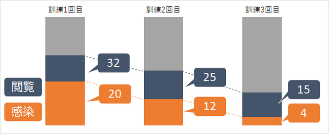 メール閲覧の可否だけでなく、感染PCおよび流出の恐れがあるファイルのリストを作成し、訓練対象者のセキュリティに対する危機意識を高めます。