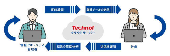 MR-SATは、標的型攻撃を模した訓練メールを従業員の方々に送信することで、標的型攻撃への対応力を身に着けていただくための予防訓練サービスです。