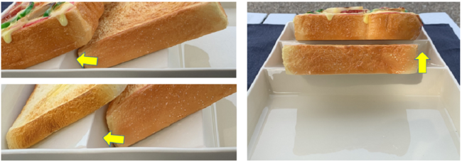 1. トーストのバター面が触れ合うことなく、重ねず置くことが出来ます。