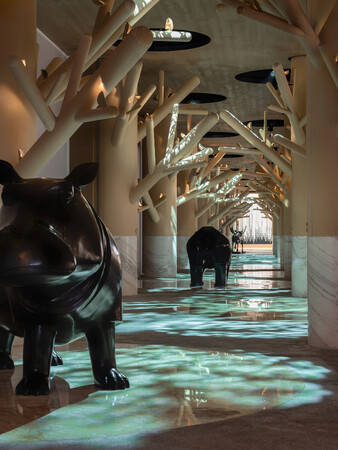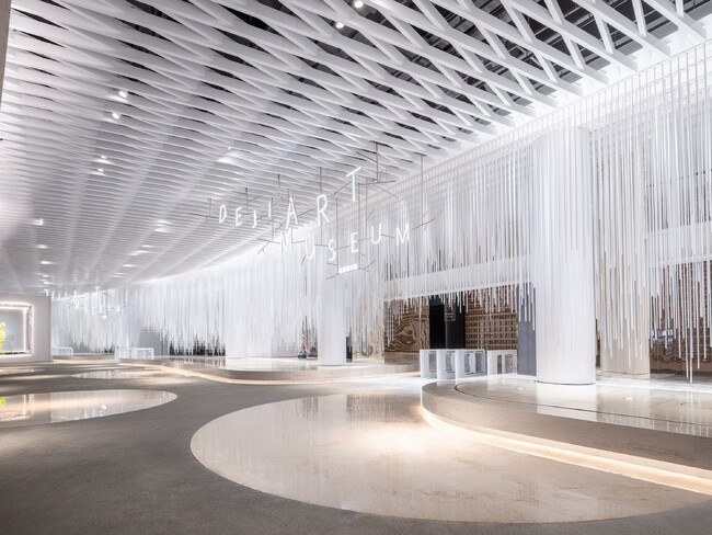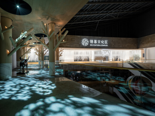 今回受賞したのは、2022年2月にTHE TRIANGLE.JPによりデザインを一新し、リニューアルオープンをした中国南京市の商業施設DEJI PLAZA内の新施設DEJI CULTURAL COMPLEX。中国国内売り上げ第2位を誇るDEJI PLAZAの大型リニューアルは、老舗の風格を持ちながらも新たなるライフスタイルを提案するラグジュアリーモールとして中国国内でも話題となった。中でも注目されたのが、モール最上階に新たに建設されたCULTURAL COMPLEXと呼ばれる体験型のアート空間。7300平方メートル の空間には、美術館、画廊、カフェや、デジタル技術を駆使した博物館が構成され、買い物をするだけでなく、訪れた人をわくわくさせるエンターテイメント空間となっている。