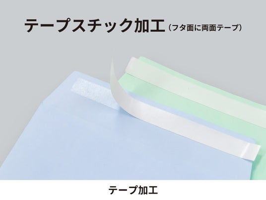 フラップ(フタ)に両面テープが付いています。"耳出し"仕様なので、封緘時に剥離紙を簡単にめくることができます。