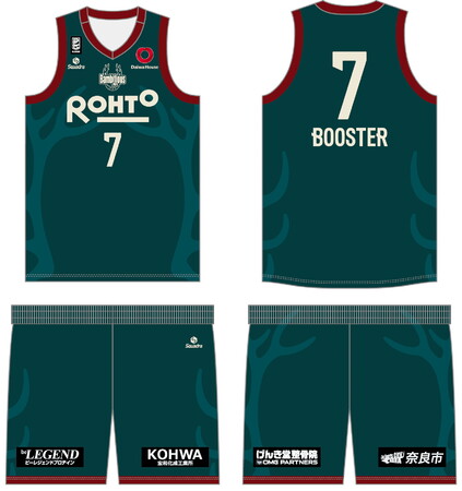 バンビシャス奈良のセカンドカラーである緑をベースに、鹿の角をモチーフとしたデザインを大きく取り入れ、力強さを表現しました。