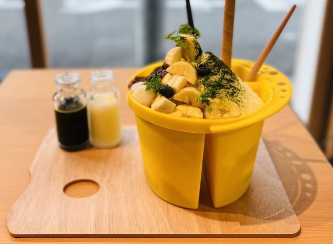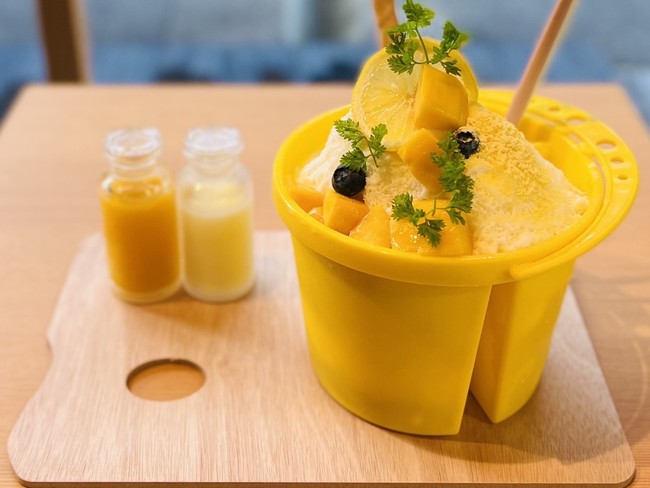 文房具屋内に併設されたカフェで夏季限定で販売される[文房具屋の牛乳かき氷]