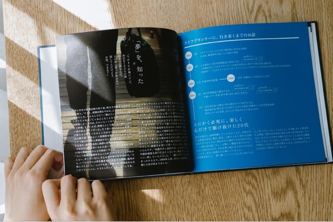 そのため、「本」と聞いたときに思い浮かぶ小説やビジネス書などの文章が羅列されている形式ではなく、1ページ1ページにデザインが施され、写真をレイアウトした雑誌やフォトブックに近い形の本になっています。