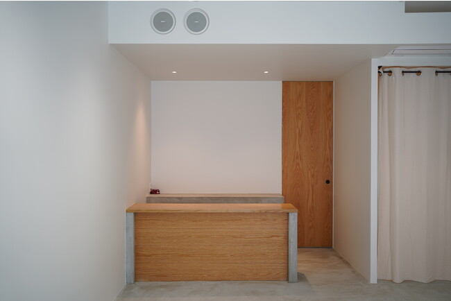 白を基調とした店内には、自然体でふらっと立ち寄って贅沢な時間をゆったりと過ごして頂けるように木製ベンチがお出迎え。