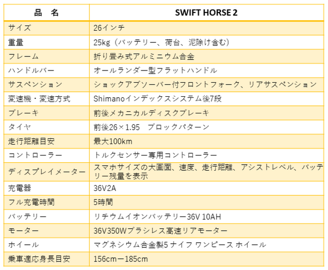 福田国際株式会社は、26インチの折り畳み式スポーツサイクルと電動アシストシステムをハイブリッドさせた電動アシスト自転車(e-Bike)、ブランド名 「SWIFT HORSE 2」を、2023年6月23日Makuakeにて先行販売を開始いたします。(プロジェク掲載URLは、6/23から公開)