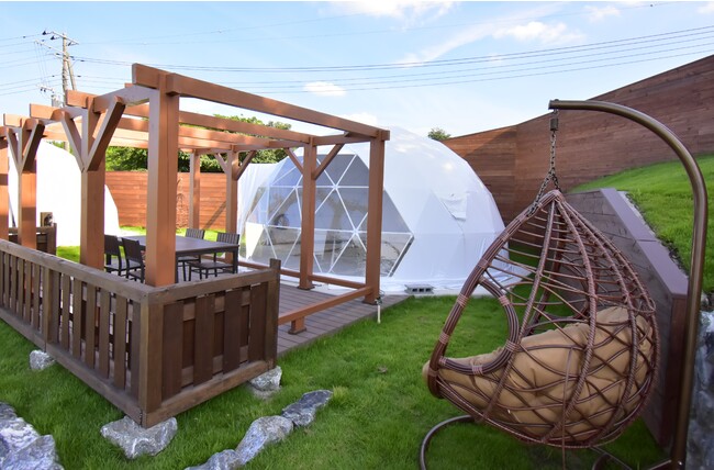 日本初※!グランピングルームに和テイストの温浴施設が使い放題で付随され、他では体験できない施設となっております。