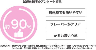 実際に体験してもらった来場者のアンケート結果シーシャ初心者・未経験者・ライトユーザーからは特に反響が良く、ビジネス目的・個人使用のどちらの商談も頂ける満足度に。
