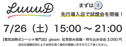 2025年7月26日に先行導入店【電気加熱式シーシャ専門店】gleamで試煙会を開催! 20歳未満の方のご参加はできません。