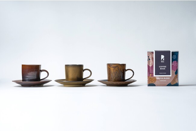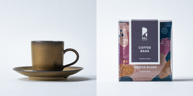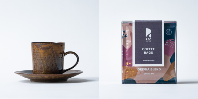 高取焼コーヒーカップとREC COFFEEコーヒーバッグをセットにし販売