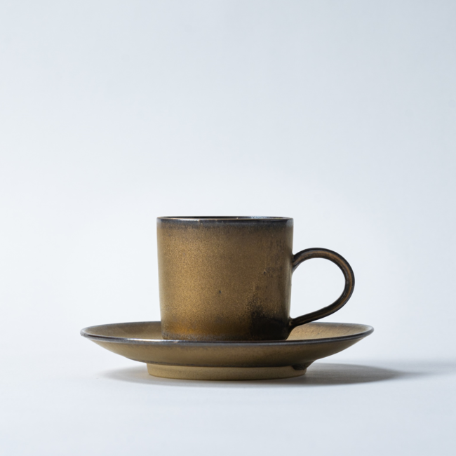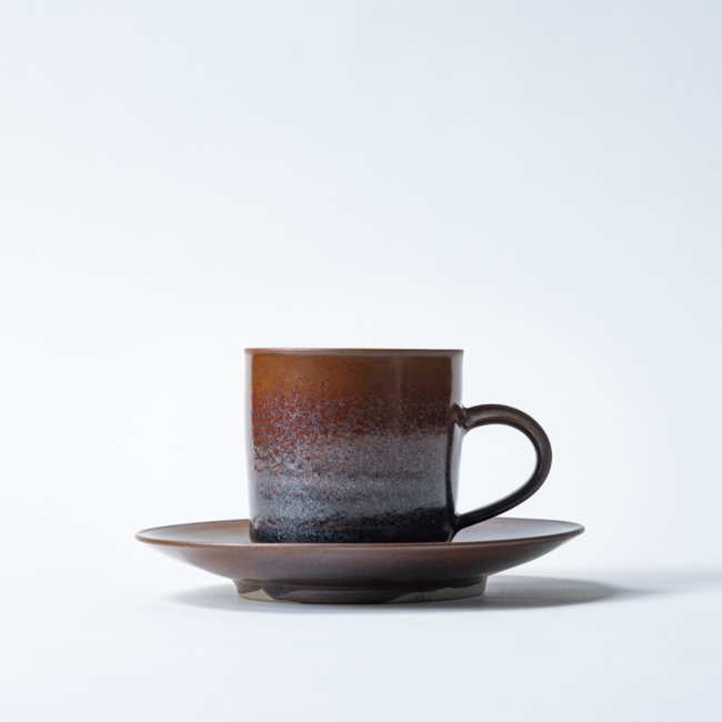 「高取の七色くすり」の中でも、玄人好みの道外釉、素朴ながらも上品な雰囲気が魅力のコーヒーカップです。