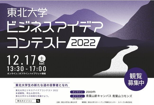 東北大学ビジネスアイデアコンテスト2022のウェブサイトよりお申し込みください。