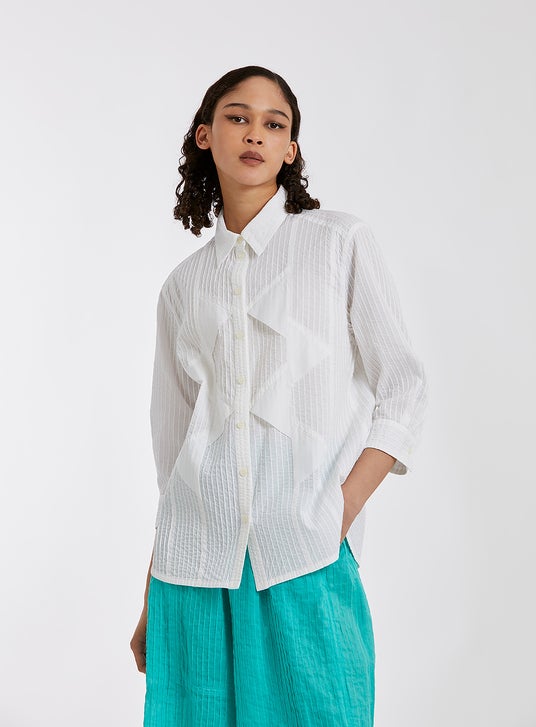 天然素材を常に使用することで柔らかな肌触りが着心地良く、ピンタックの凹凸感に優しく陰影をつけるさまが、彫刻のように優美な印象。