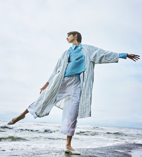 景観や芸術の内にある大胆で繊細な日本の美意識を、ピンタックという職人による立体的な技を駆使してデザインした服。