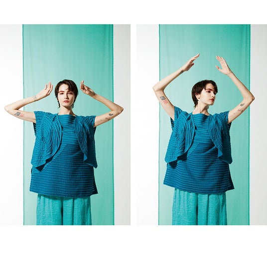 躍動感あふれるピンタックのアートファッションは、着る人の体や心を解放し、ポジティブな気持ちにさせていきます。