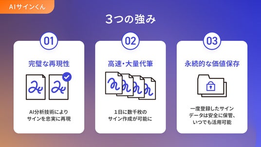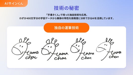 AI手書きの技術を基盤とし、サイン筆跡を代筆と保存できるようになりました