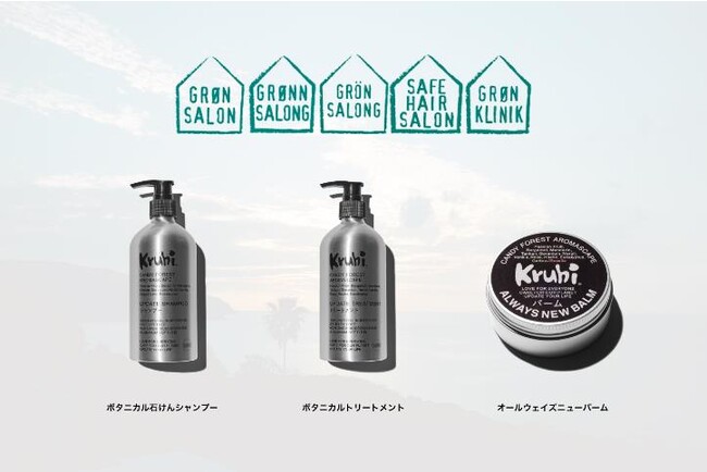 ブランドスタートと同時に発売を開始した「Kruhiボタニカル石けんシャンプー」、「Kruhiボタニカルトリートメント」、続いて本年1月の伊勢丹新宿店での先行発売からスタートした「Kruhiオールウェイズニューバーム」の全3製品は、欧州の最高水準の環境認証Gron Salon(グリーン・サロン)認証をアジア・日本で初めて取得している。