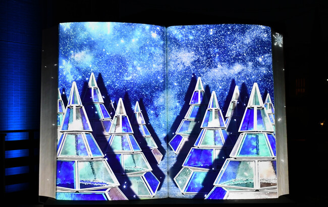 17:00からは、NAKED,INC.が手掛けたプロジェクションマッピングの上映が始まりました。絵本に見立てた巨大な本のオブジェに投影されたクリスマスツリーに、こどもたちから歓声が上がっていました。