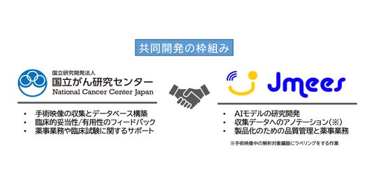 株式会社Jmees(代表取締役:松崎 博貴、千葉県柏市)と国立研究開発法人国立がん研究センター(理事長:中釜 斉、東京都中央区)東病院(病院長:土井 俊彦、千葉県柏市)は、両者が共同で開発した「内視鏡手術支援プログラムSurVis-Hys」が2024年8月2日付で厚生労働大臣より製造販売承認(薬事承認)を取得したことをお知らせいたします。国立がん研究センター発ベンチャーによる医療機器の承認取得は2例目(※)となり、株式会社Jmeesとしては初めてとなります。