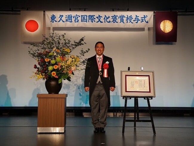 北海道出身で国内外で高い評価を受ける和太鼓・津軽三味線二刀流演奏家木村善幸(北海道・札幌市)は(一財)東久邇宮国際文化褒賞記念会が主催する、日本と関係するあらゆる分野で世のため、人のために多大な貢献をされた方々を、国籍を問わず広く受賞の対象として表彰する『第51回東久邇宮国際文化褒賞授与式』(東京・八芳園)にて同賞を授賞いたしましたことをここにお知らせいたします。