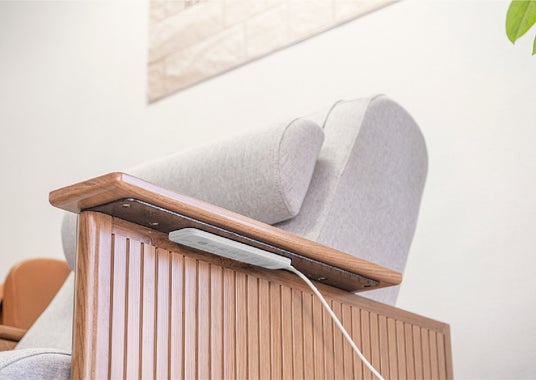 リモコンはマグネットでアームレストの裏面にスマートに収納。ソファとして使う時の「 見た目 」にも配慮しました。(画像はイメージです)