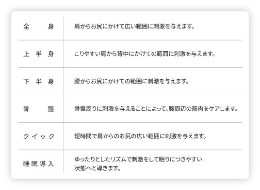 時にはやさしく、時には強く。繊細な動きのエアバッグが人の手の様な押圧を再現。