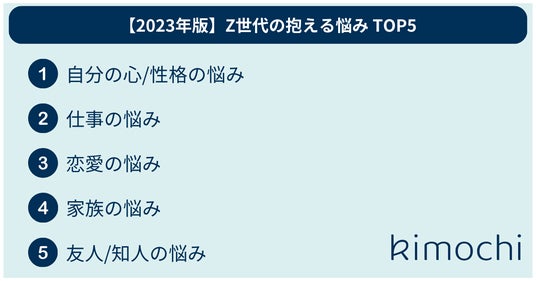 Z世代の悩みの中でも特に多いトップ3は以下の通りです。