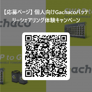 株式会社Gachaco(代表者 CEO 渡辺 一成、以下「Gachaco」)は、2024年に予定しているバッテリーシェアリングの個人向けサービス開始に向けて、「Gachacoバッテリーシェアリング体験キャンペーン」 を10月下旬より開始予定です。本キャンペーンの開始に先立ち、モニターとして参加いただける方を募集いたします。
