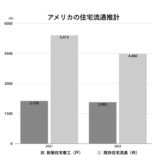 ※出展元:U.S.Census Bureau「New Residential Construction」/National Association of REALTORS「Existing-Home Sales date」