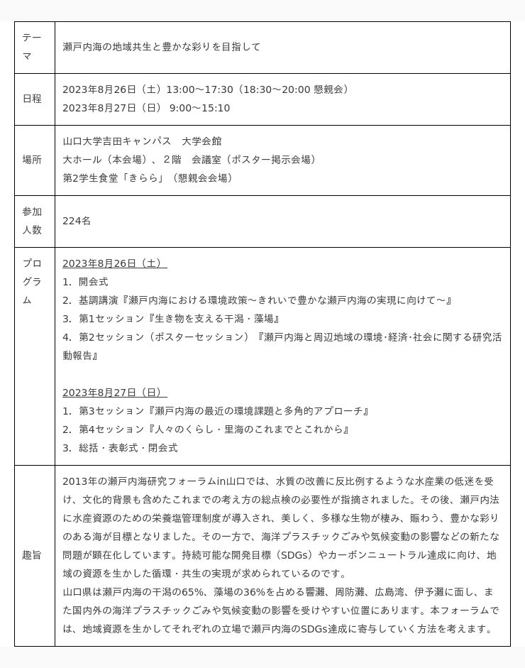 ▼【瀬戸内海研究フォーラム in 山口】の概要