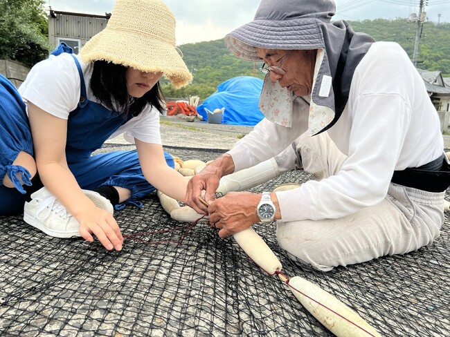 海洋ごみ回収装置製作の様子(左:横田、右:森漁協組合長(当団体海洋アドバイザー))