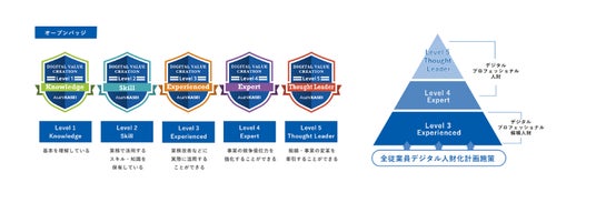 旭化成グループは、デジタル技術によりグループの強みである人財・技術・事業の「多様性」と「変革力」を最大限活かし、ビジネスモデルを変革させ、価値創造をリードするものとして、DXを積極的に推進しています。デジタルとの共創による変革をグループ横断で推進するためデジタル共創本部を設立し、様々な部門のデジタル人財が集まり、社内外の交流を広げながらDX基盤の強化と新規ビジネスの創出を目指しています。全従業員向けのDX教育を強化しており、2021年6月からは独自に設計したオープンバッジ制度をグローバルに運用を始めました。