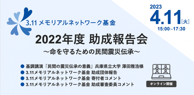 公益社団法人3.11メモリアルネットワークは、寄付を財源とした伝承活動への助成報告会を開催します。