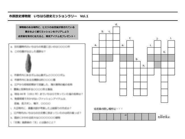 この度、 “より楽しく、分かりやすく”歴史を伝えるべく、館内を巡り市原市の歴史に関するミッション(クイズ)に挑戦する「いちはら歴史ミッションラリー」を開催します。